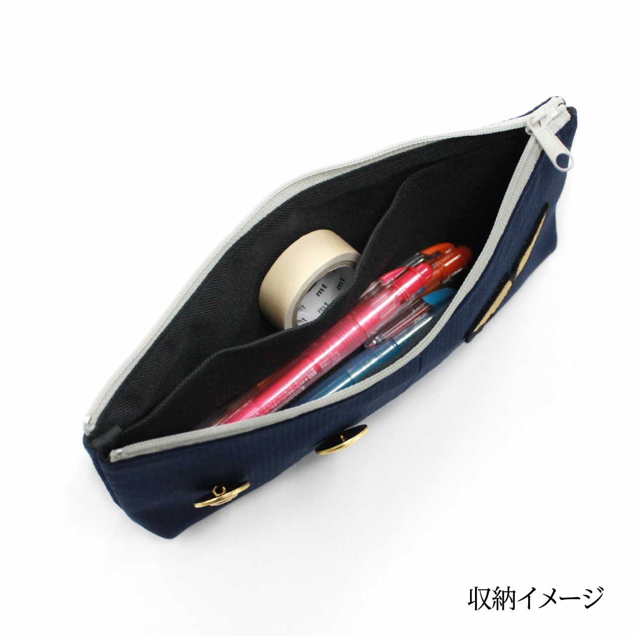 使用済みとなった旧制服をアップサイクルしたペンケースです。
